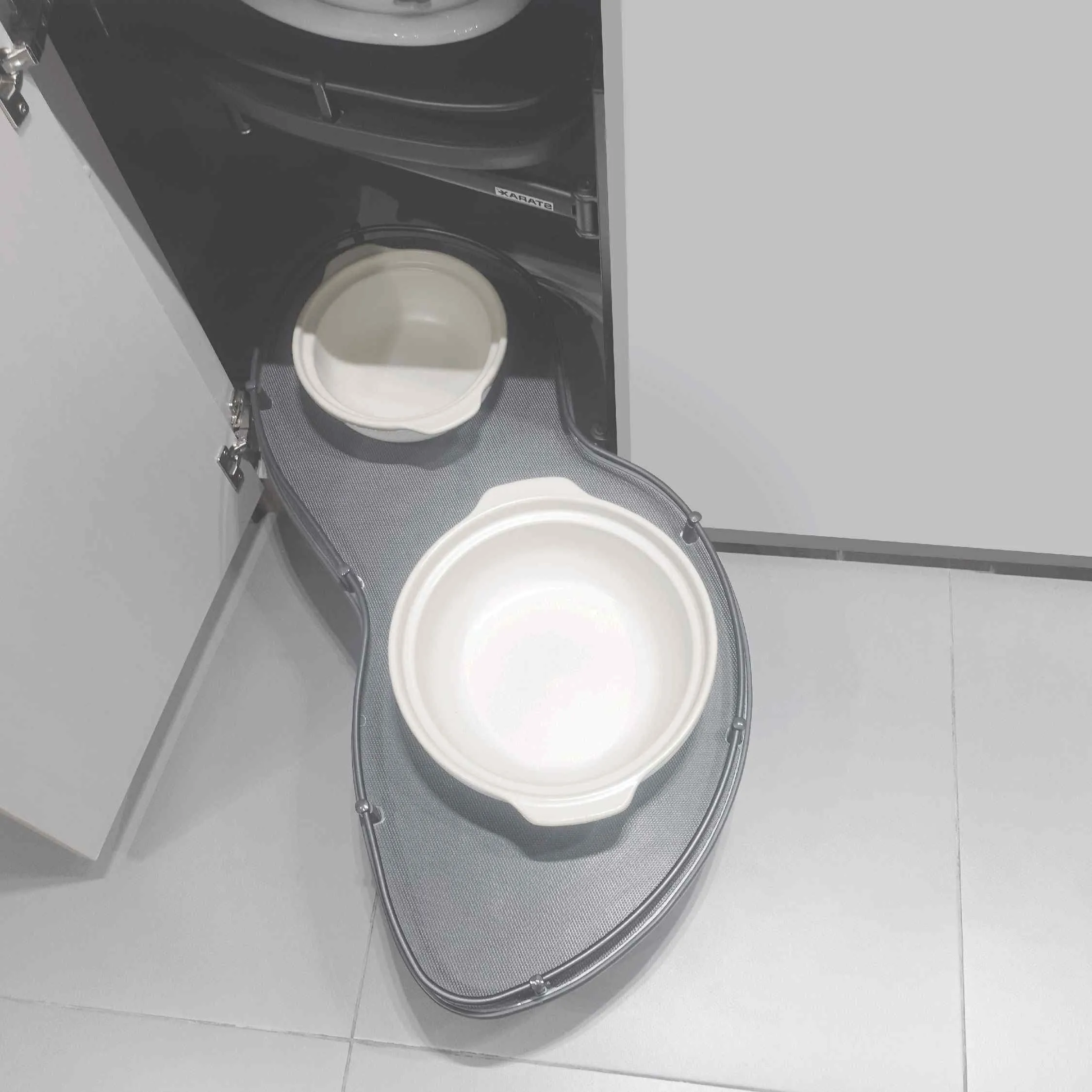 Designed to maximize storage space and provide better accessibility to items in the often hard-to reach corners of kitchen cabinets